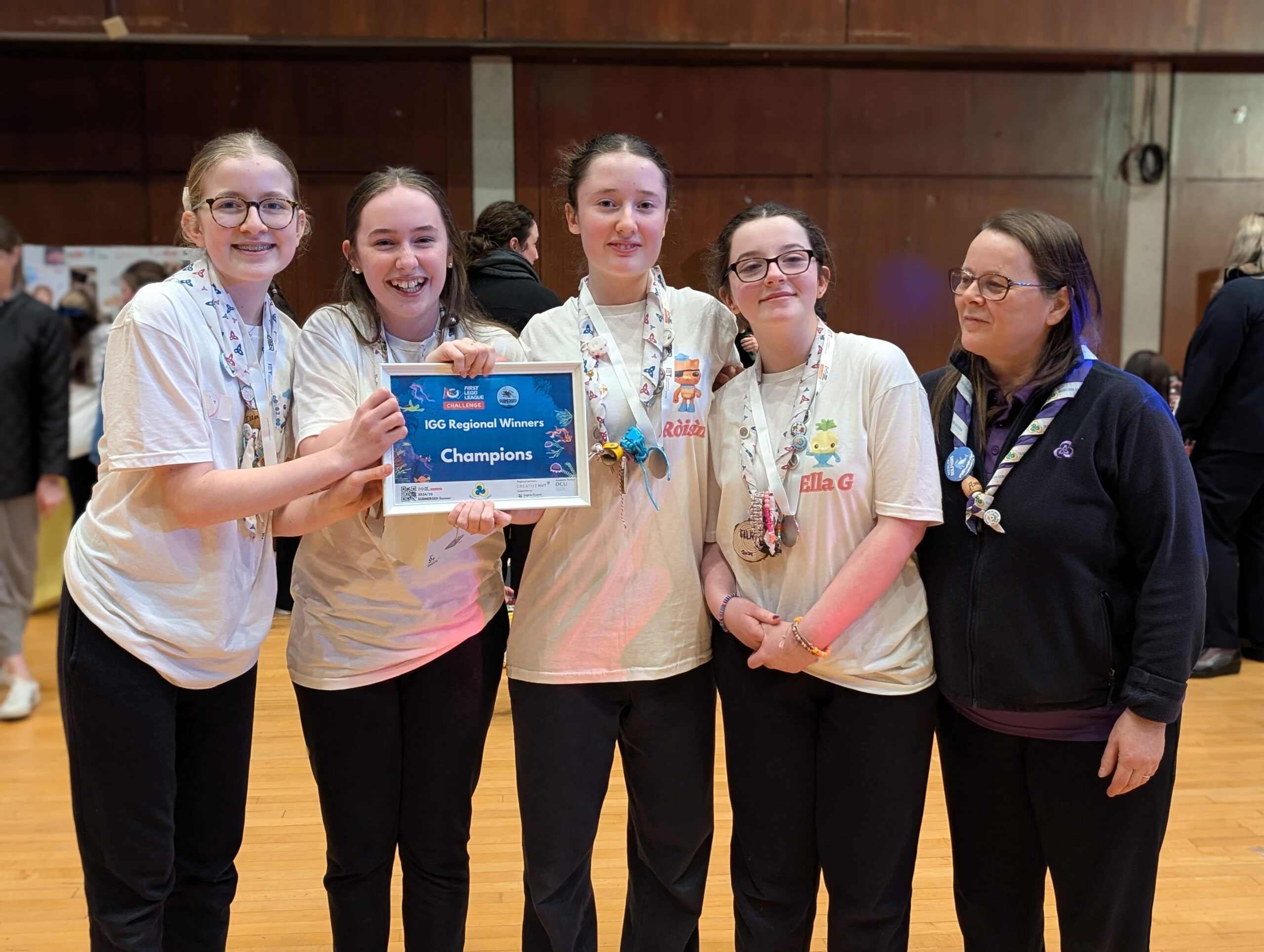 Tournament days are filled with energy, learning, and friendly competition. Teams present their projects, test their robots, and celebrate their achievements alongside parents, Leaders, and volunteers. Irish Girl Guides teams also meet participants from other organisations. Already two of our teams (Cora’s Team and The Octonauts) have reached the Ireland Finals.